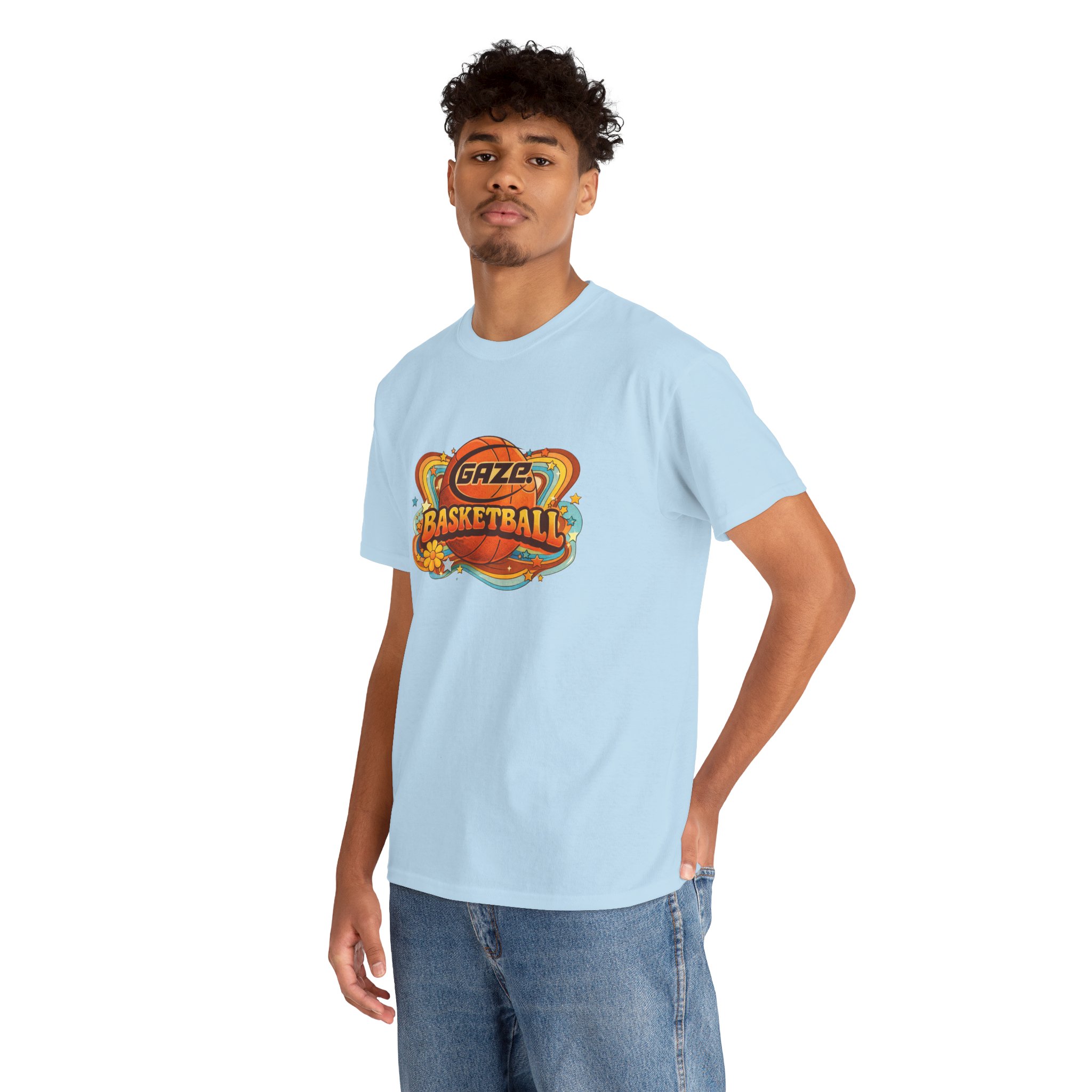 This retro basketball tee carries the warm, sun-faded energy of a backyard court at golden hour. The soft, midweight cotton sits easy on the shoulders while a vintage ’70s logo arcs across the chest, stirring memories of pick-up games, scuffed sneakers, and scoreboard buzzers. It slips into the life of someone who likes to layer denim jackets, roll up the sleeves, and head out to watch a local game or replay old highlights with friends. The faded print and classic crew neckline keep the look honest — not trying too hard, just showing a clear love for the game and its old-school style. Wear it to late-afternoon scrimmages, neighborhood bar nights, or while coaching little ones through their first layup; it’s a lived-in piece that belongs where the court meets the street.